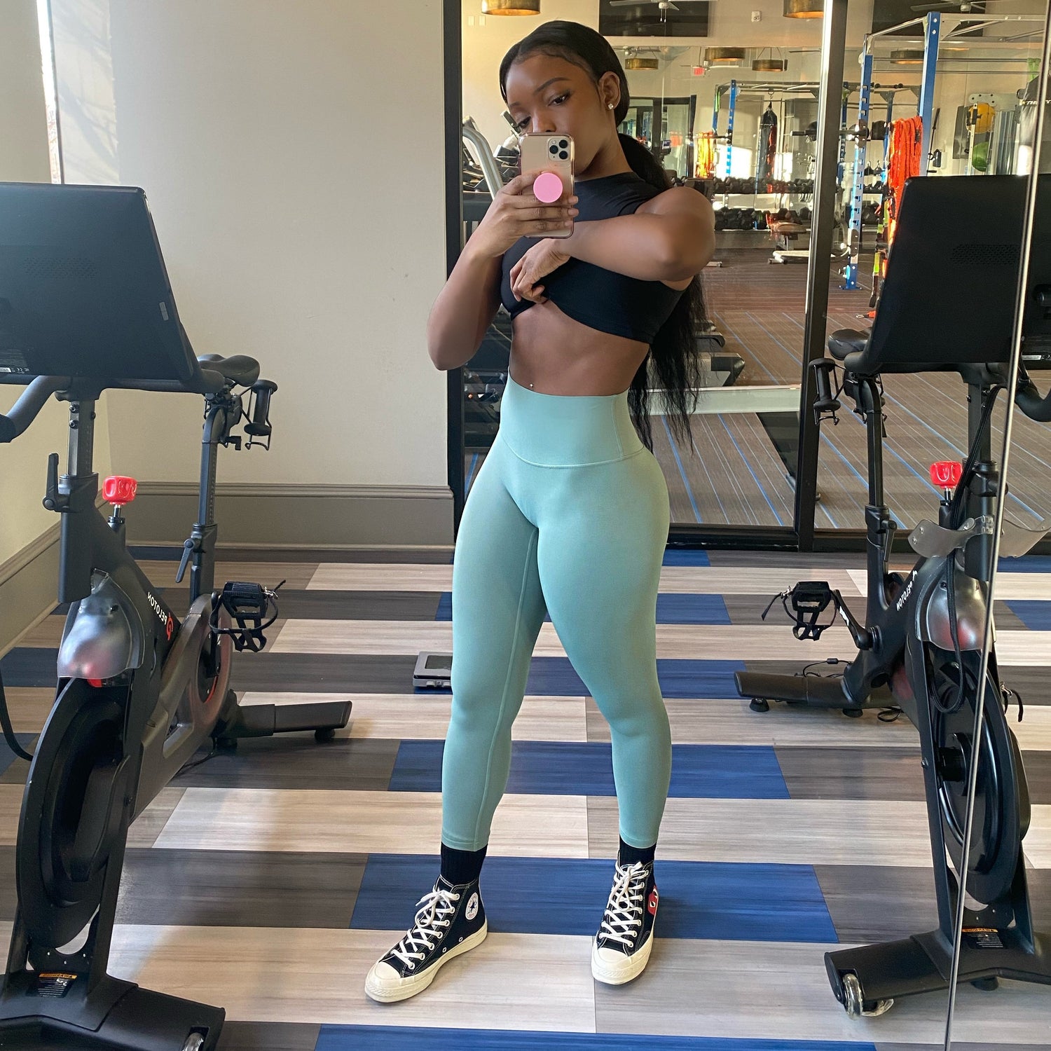 High waist compression, buttery Soft, stretchy, form fitting comfortable yoga leggings. Model is wearing a size small.
